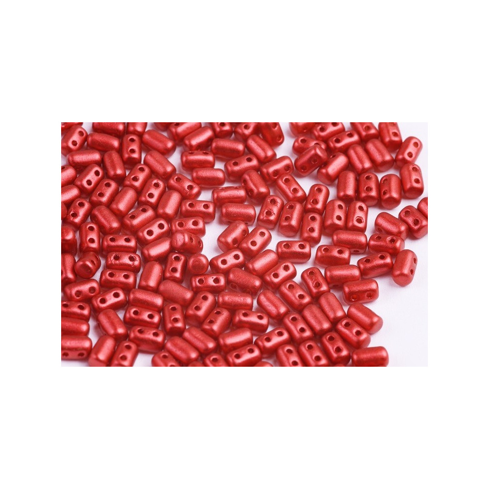 Characterized by a perfectly smooth cylindrical shape and dual parallel holes, this Chalk Lava Red finish offers a smoldering, matte-metallic glow that adds immediate depth to any handcrafted piece. These 3x5mm glass beads are particularly effective in flat geometric patterns or structural 3D weaves where precise alignment is essential for a professional finish. Beautifully complements jet black for a classic look, or you can pair them with emerald green for a striking contrast that captures the light. Many designers enjoy using Matubo SuperDuo beads alongside Rulla cylinders to create intricate lace-like textures and complex transitions in wide cuff bracelets.