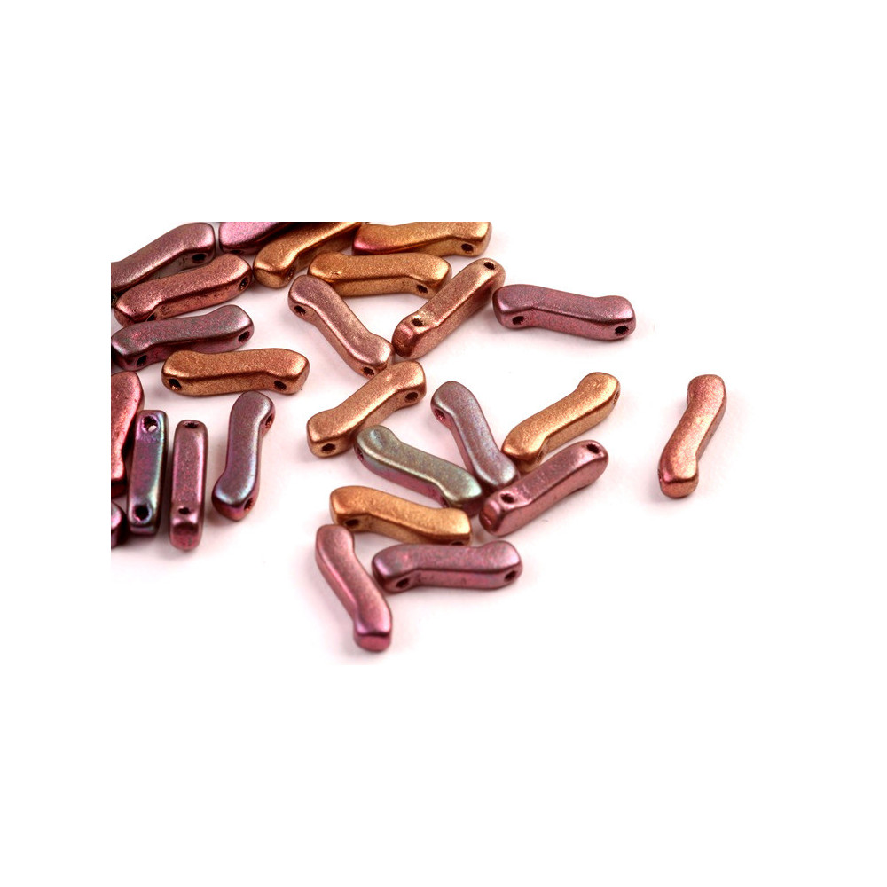 Precision-engineered with a 0.8 mm hole size, these Czech glass beads by Matubo feature a unique architectural S-curve that allows for seamless interlocking in complex geometric beadwork. The matte metallic finish in shades of mauve and copper offers a sophisticated, low-luster appearance that pairs beautifully with Matubo SuperDuo for structural integrity in three-dimensional designs. Professional artists will appreciate the consistent hole spacing and smooth glass edges, ensuring that multiple thread passes through the bead can be achieved using beading needles size 10-12 without the risk of thread abrasion.