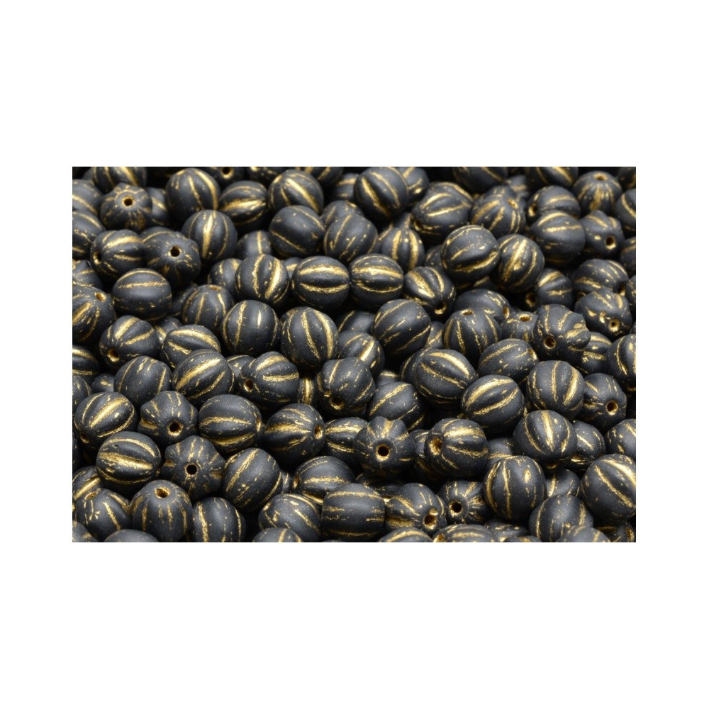 Melon Beads 6 x 6 mm Black Opaque Matte Gold Painted 23980-84100-54302