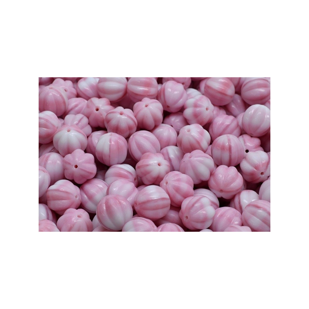 Melon Beads N. 1504 8x8mm Pink Silk Overlay
