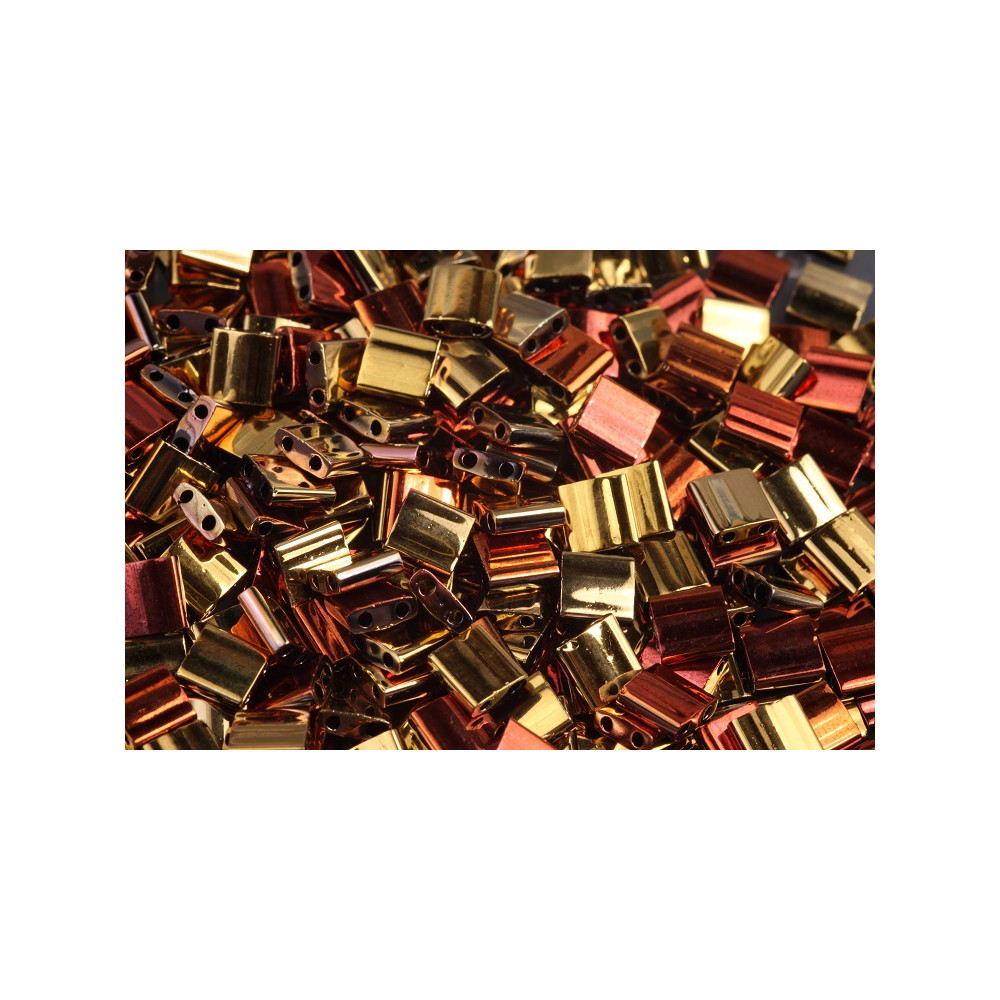 MIYUKI TILA Beads size: 5x5 mm Bead hole size: 0,8 mm Price per pack: 3 g Color: MET GOLD IRIS...