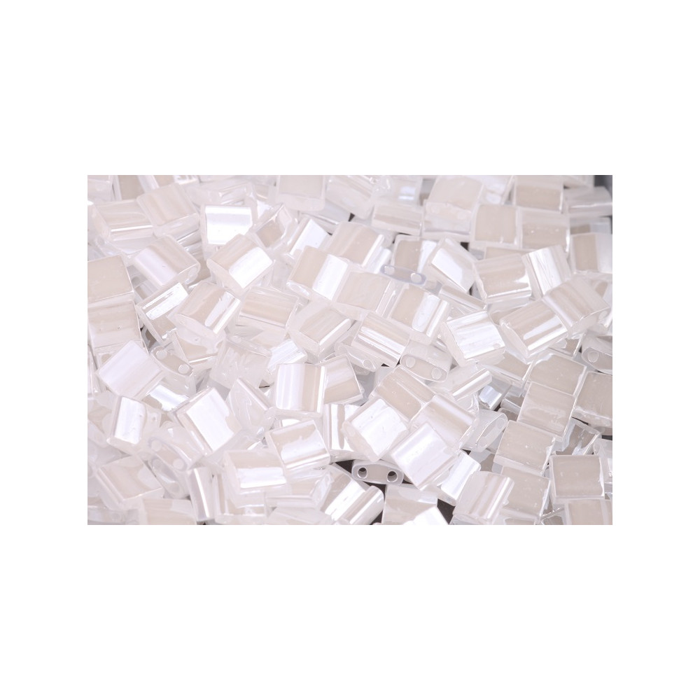 MIYUKI TILA Beads size: 5x5 mm Bead hole size: 0,8 mm Price per pack: 3 g Color: White Pearl AB...