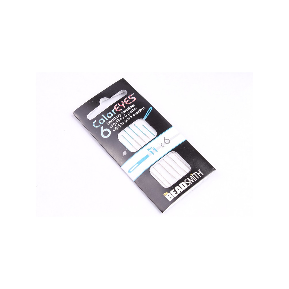 Professional Size 11 beading needles featuring a blue color-coded eye for rapid size identification. These high-quality steel tools are specifically designed for precision work with tiny 15/0 seed beads and intricate jewelry designs. Packaging: 6 pieces per pack.