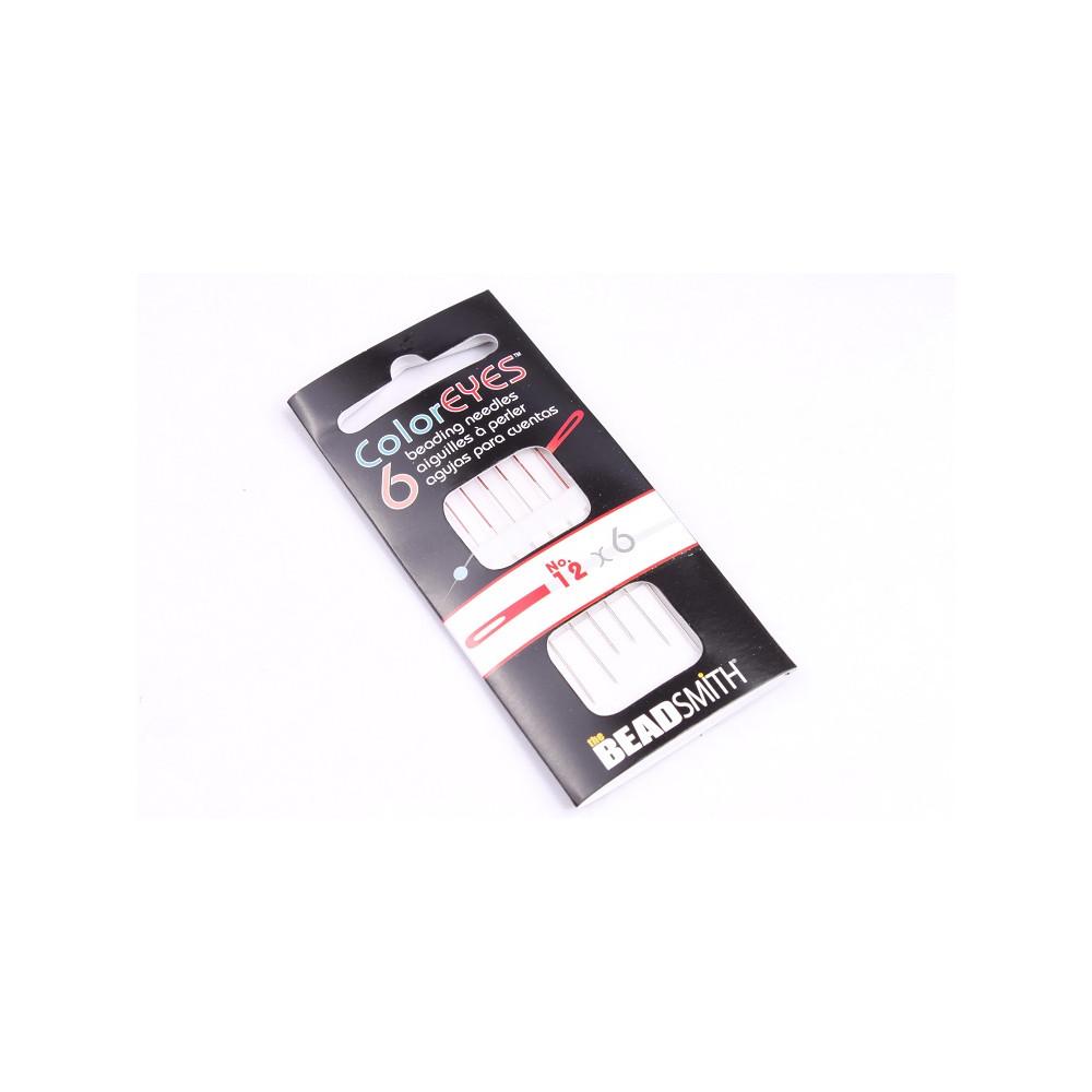 BeadSmith ColorEYES beading needles in size 12 featuring a distinctive red eye. These extra-fine needles are the perfect tool for working with the smallest 15/0 seed beads and intricate bead weaving projects.
