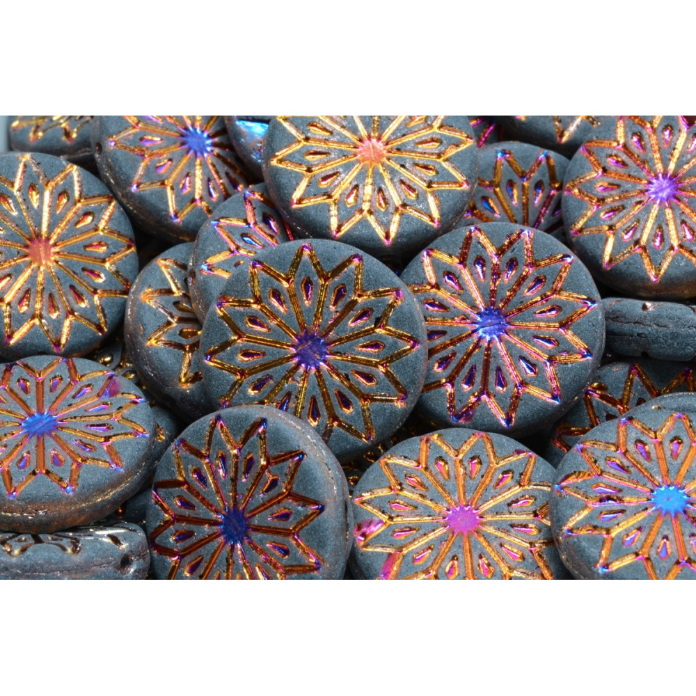 Introducing the exquisite Origami Flower Beads from the renowned Czech manufacturer Rutkovsky. Measuring 18x18mm, these intricately designed glass pressed beads are a true testament to the artistry and craftsmanship that Czech glass is celebrated for. Each bead features an elegant floral motif paired with a symmetrical, geometric pattern that draws inspiration from the delicate art of origami. The detailed relief design not only enhances their visual appeal but also adds a captivating texture and depth, making these beads an ideal choice for creating statement jewelry pieces.