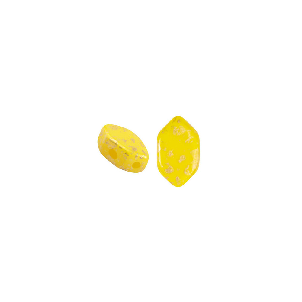 Les Perles par Puca® represents a unique synergy between avant-garde French jewelry design and traditional Bohemian craftsmanship. Created by artist Annick Puca, the Paros® shape is specifically designed to nest perfectly within intricate geometric patterns. The Jonquil Opal Splash finish provides a vibrant yellow base with sophisticated metallic accents, adding depth and a modern artistic flair to high-end jewelry pieces.