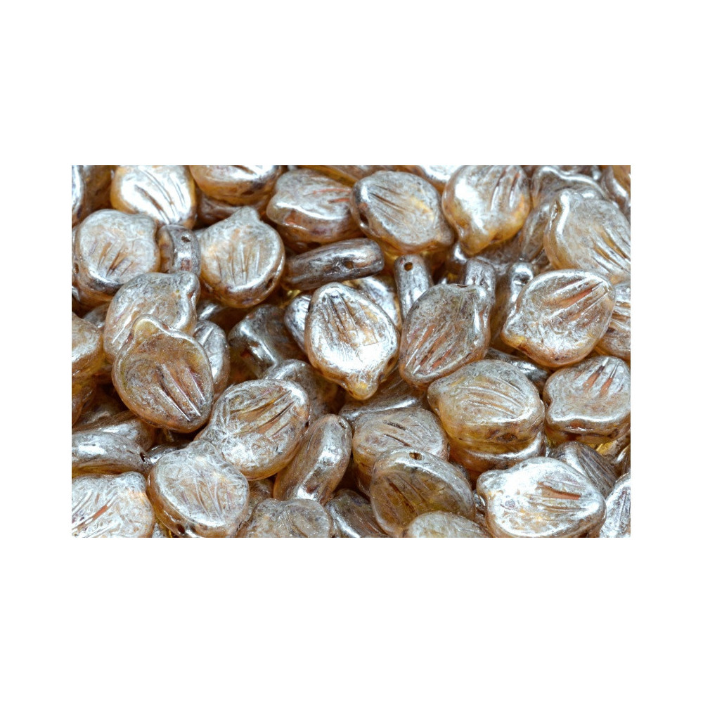Discover the exquisite craftsmanship of Rutkovský, a distinguished Czech manufacturer renowned for producing high-quality glass beads. Our Peony Petal Beads in Crystal Ivory Spotted are a perfect embodiment of elegance and artistry. Designed to resemble the delicate petals of a peony, these pressed glass beads feature soft grooves that replicate the natural textures found in nature, making them an essential addition to your creative endeavors.