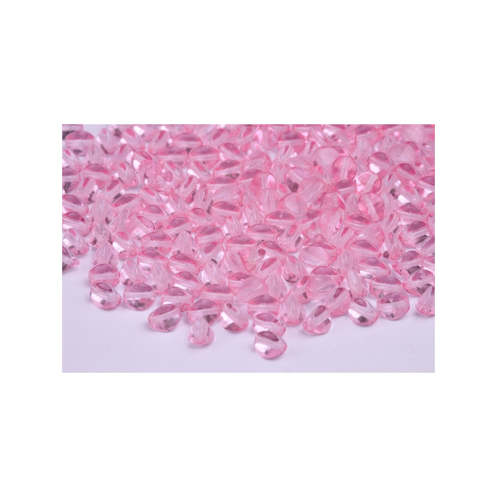 A delicate pastel bracelet comes to life when you incorporate the unique three-sided geometry of these pressed glass elements. The pink transparent finish catches the light from every angle, making them a superior alternative to standard round beads for adding dimension and texture to your handmade jewelry pieces. Because of their slightly indented sides, they nestle together perfectly in curved designs.