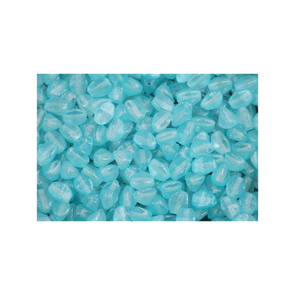 Aqua tones and a soft, sugary texture define these versatile glass components, which are essential for adding geometric depth to your work. These Pinch Beads feature a unique three-sided, tapered shape that allows them to nestle closely together in circular patterns or along curved edges. Their distinctive profile creates a tactile surface that pairs exceptionally well with the brilliance of Czech fire polished beads for high-contrast jewelry sets.
