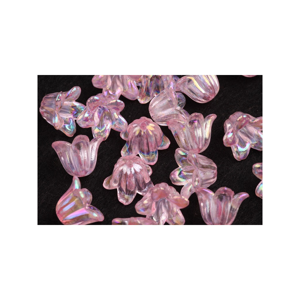 brighten your craft projects with iridescent plastic beads in the shape of flowers that are as magical as practical. These 10 x 15 mm beads bring a light game full and push your products to a new level. Ideal for making fine angel pendants , earrings or other decorations that will appeal to all ages.