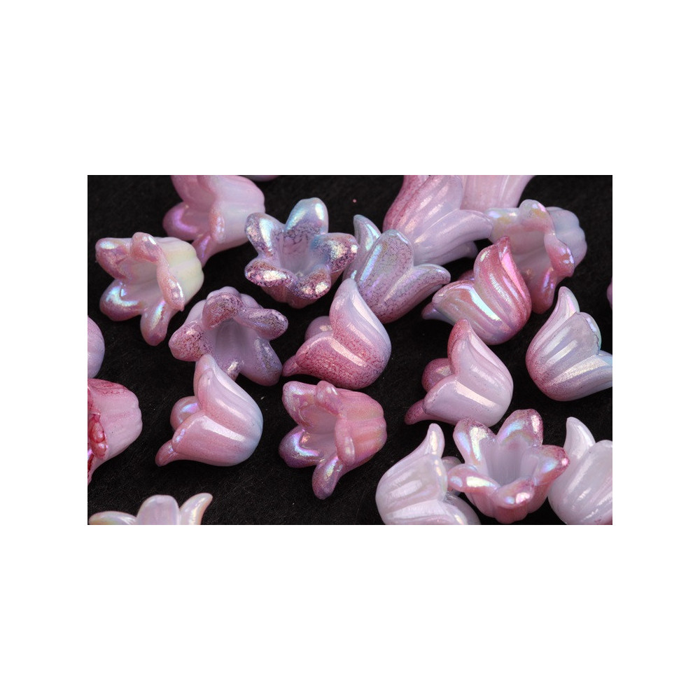 brighten your craft projects with iridescent plastic beads in the shape of flowers that are as magical as practical. These 10 x 15 mm beads bring a light game full and push your products to a new level. Ideal for making fine angel pendants , earrings or other decorations that will appeal to all ages.