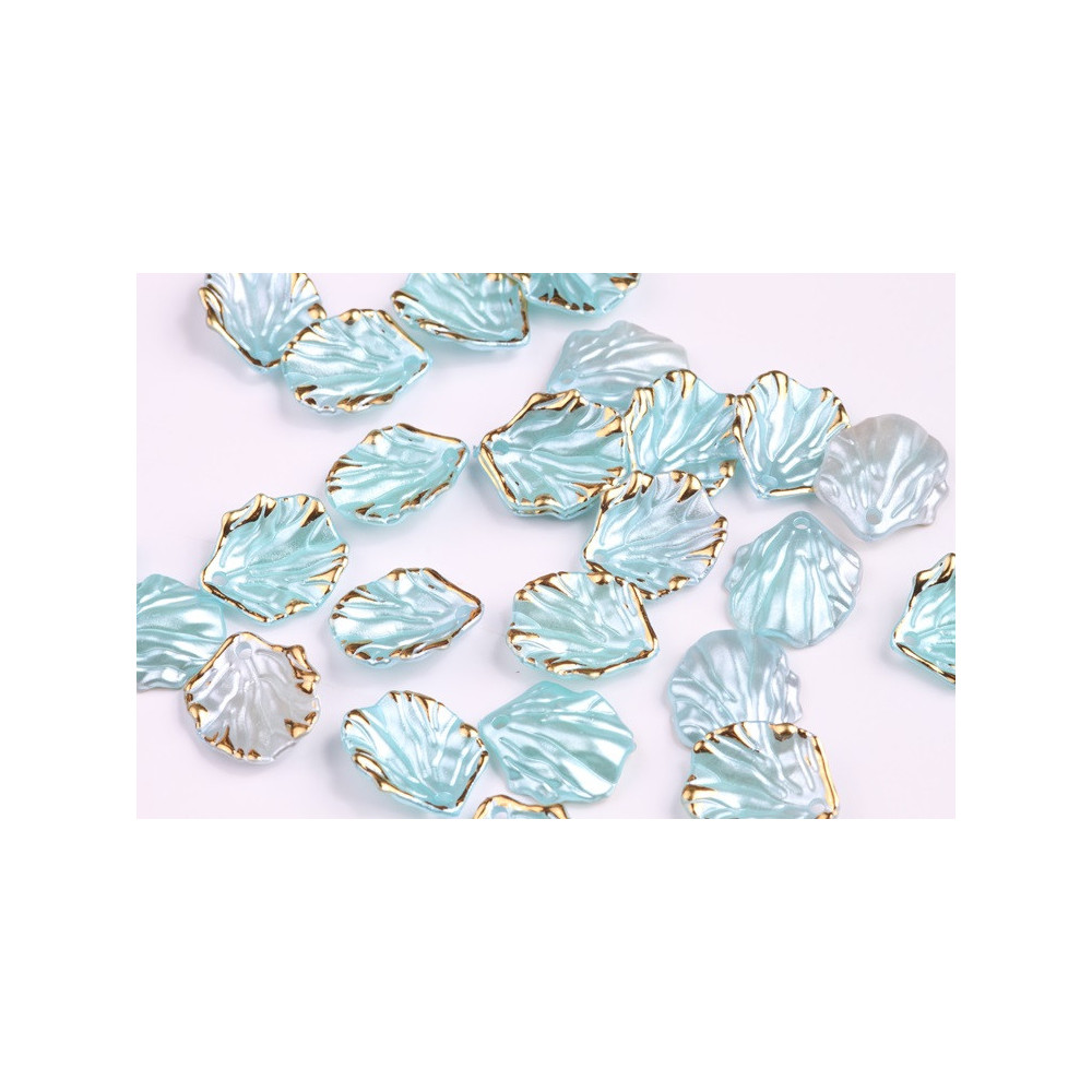 plastic leaf beads bring a natural and romantic touch to your projects. These lightweight beads with a size of 15 x 17 mm are ideal for creating fine necklaces, earrings or for special accessories. In the package you will find 10 pieces in a beautiful shade with elegant golden decoration around the perimeter, giving them a sophisticated look.