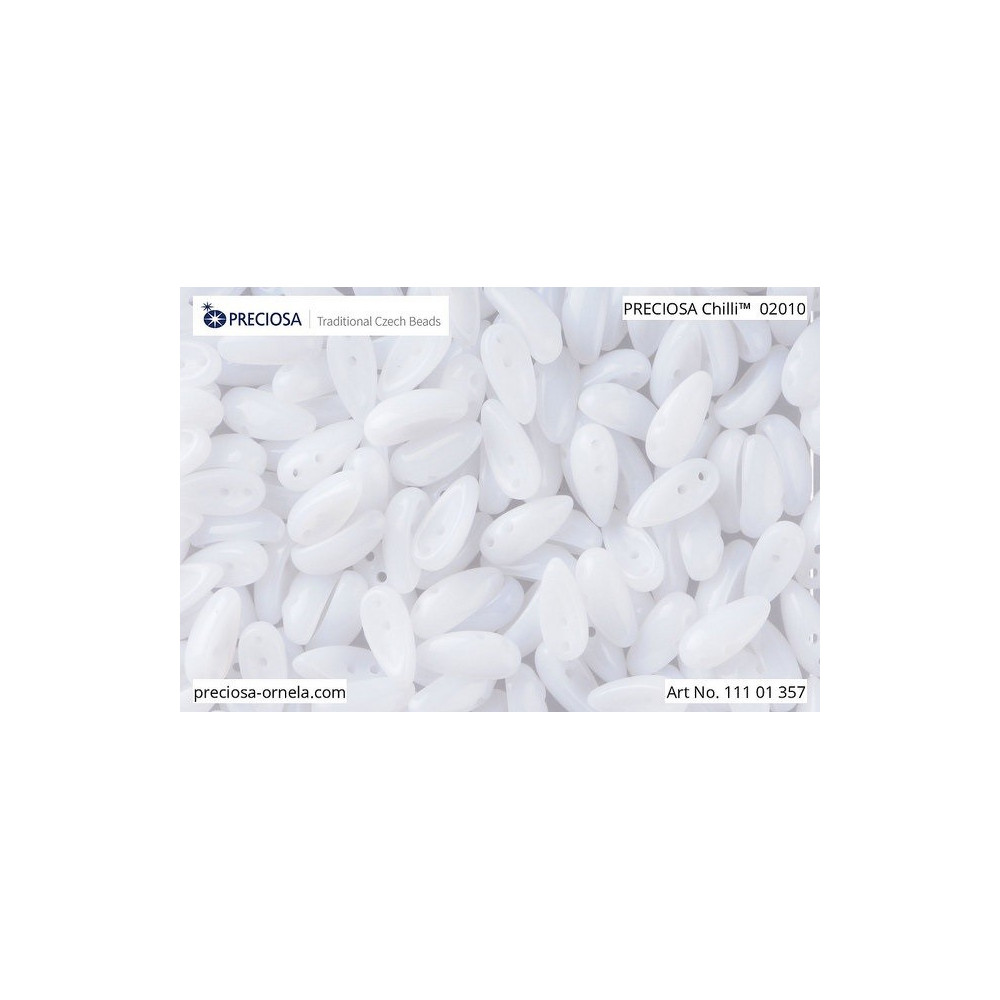 Preciosa Chilli Two-Hole Pressed Beads 4x11mm White Alabaster 02010