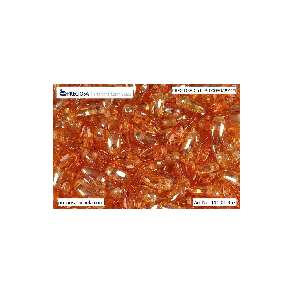 Artisans in the heart of the Czech Republic craft these Preciosa Chilli beads to embody a 300-year heritage of glassmaking excellence. The two parallel holes make them exceptionally versatile for advanced patterns, allowing you to combine them seamlessly with Preciosa seed beads to create stable, complex jewelry structures. Their transparent finish provides a luminous depth that mimics the natural beauty of sun-kissed fruit.
