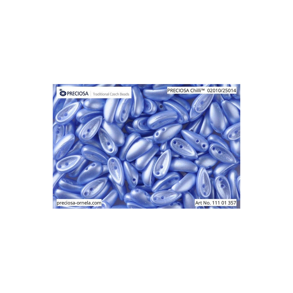 Preciosa Chilli 2-hole pressed beads - Pastel Sapphire 4x11mm 02010/25015 Size: 4 x 11 mm Hole...