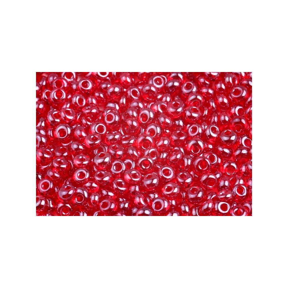 Transparent red glass is the foundation of these versatile 5/0 dropsy beads, which feature a classic teardrop shape and a high-gloss finish. The 1.1 mm hole size allows for smooth passage of various stringing materials, making them a reliable choice for complex jewelry patterns that require multiple thread passes through the bead.