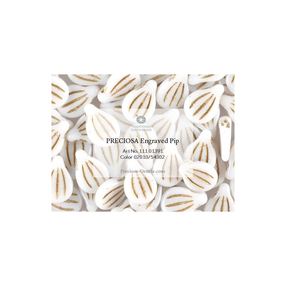 Preciosa Engraved Pip Beads size: 9x14 mm Bead hole size: 0.8 mm Price per pack: 6 pcs Color:...