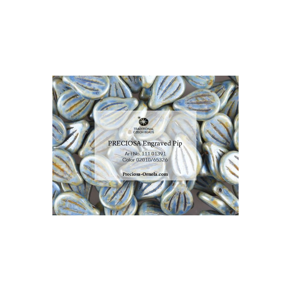 Preciosa Engraved Pip Beads size: 9x14 mm Bead hole size: 0.8 mm Price per pack: 6 pcs Color:...