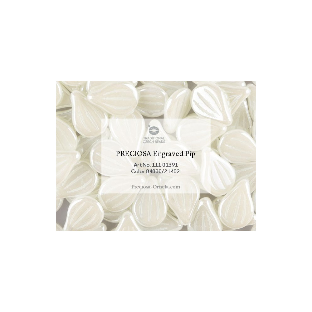 Preciosa Engraved Pip Beads size: 9x14 mm Bead hole size: 0.8 mm Price per pack: 6 pcs Color:...