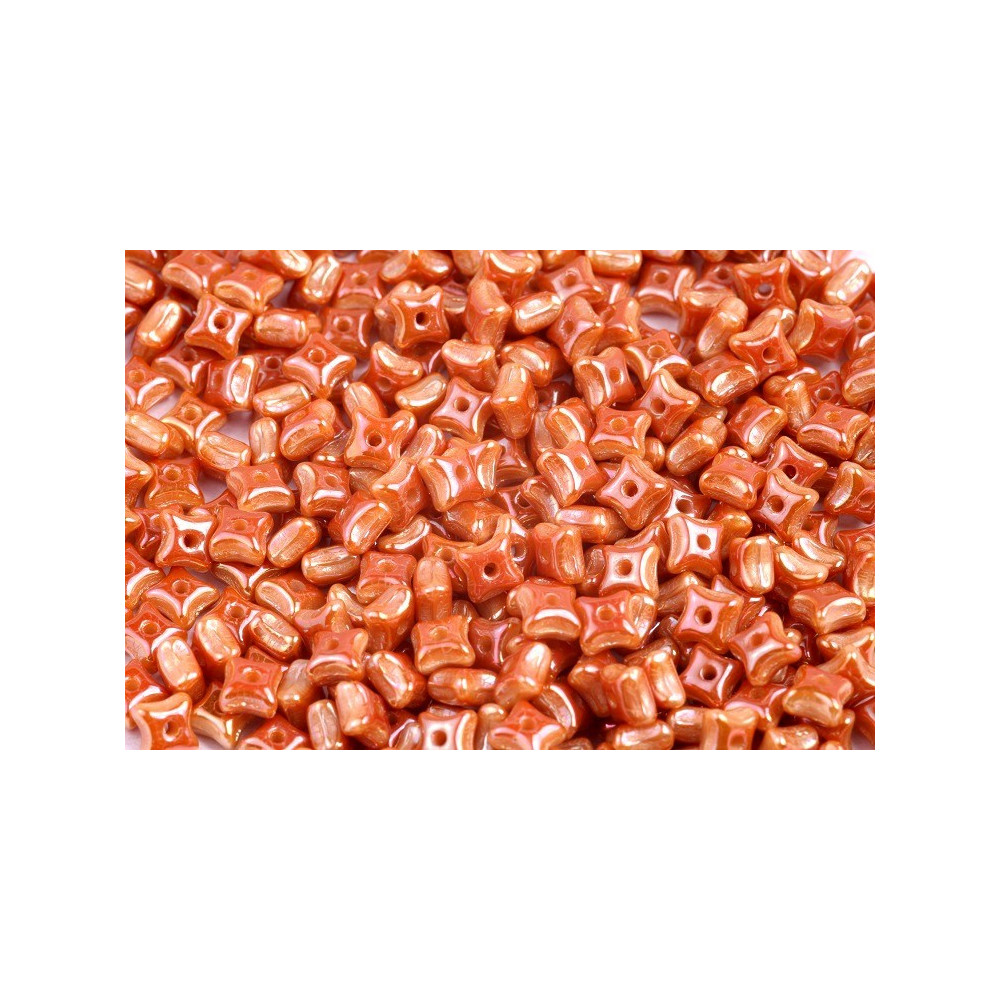Featuring the distinctive Preciosa Orion shape, these components offer a cross-like or four-pointed star silhouette that adds architectural depth to any project. The White Alabaster Full Apricot finish provides an opaque base with a rich, lustrous coating that catches the light from every angle. This specific geometry allows the beads to nestle together in ways that standard rounds simply cannot, offering new possibilities for texture and form.