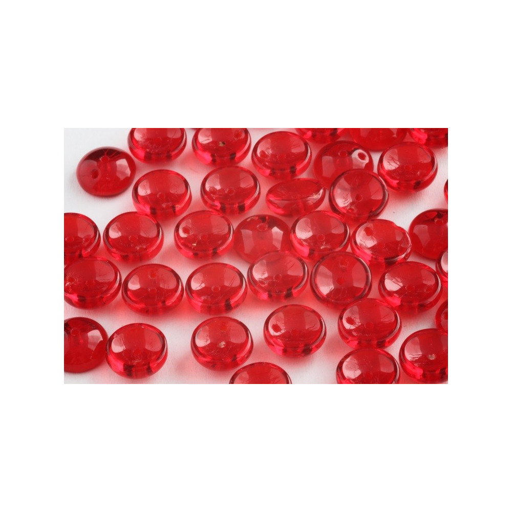 Transparent red Piggy beads produced by Preciosa feature a unique, asymmetrical two-hole design that allows for creative dimensional effects in advanced beadwork. Measuring 4x8mm with a standard 0.8mm hole size, these components are engineered for structural stability when used in circular patterns or stacked configurations. The high-quality Czech glass ensures a consistent depth of color and superior light transmission, making them an essential choice for designers looking to add texture and volume to their jewelry projects without adding excessive weight.