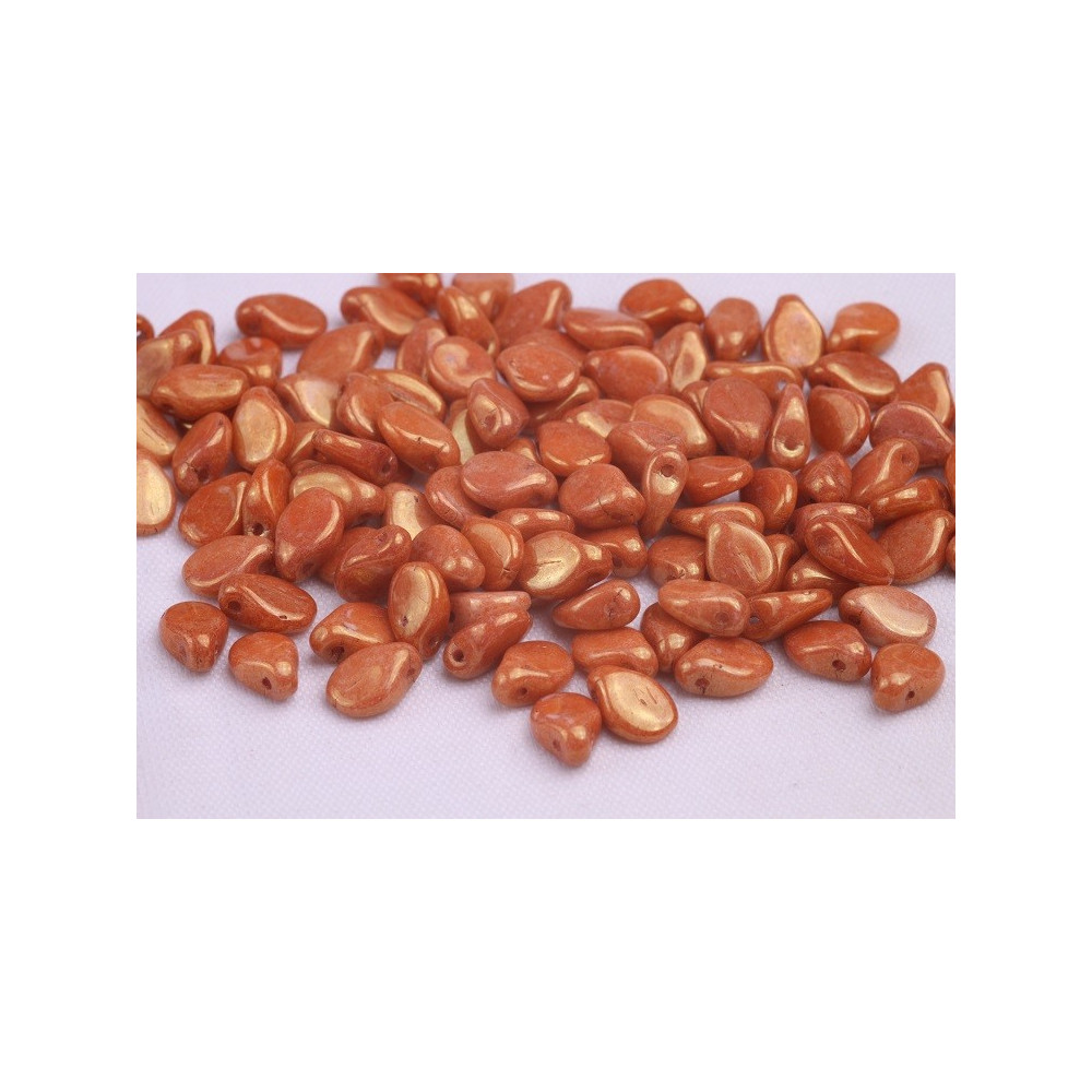 Warm metallic tones and organic, petal-like silhouettes are a staple in contemporary jewelry design, making these Preciosa Pip beads an essential component for your next project. This unique shape, designed by the renowned French artist Annick Puca, offers a smooth, tapered profile that mimics the delicate curves of a flower petal or a shimmering fish scale. These Czech glass beads feature a lustrous Gold Luster finish over a White Alabaster base, resulting in a rich, coppery glow that adds immediate warmth to any palette. For designers looking to build complex 3D structures, the Pip excellently supplements Preciosa Twin beads by filling gaps and adding dimensional relief to woven patterns.