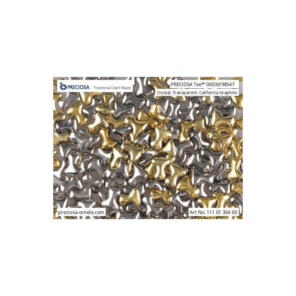 2x8 mm dimensions define the unique profile of these Preciosa Tee™ beads, which are manufactured with a single centered hole to allow for interlocking designs. This specific shape offers excellent stacking behavior, making them a favorite for textured bead weaving and architectural jewelry components. The California Graphite finish provides a sophisticated, multi-tonal metallic surface that transitions between gold and deep silver-grey, ensuring a high-end look in every project. These high-quality Czech glass beads are pressed with consistent tolerances, ensuring they integrate seamlessly into complex patterns.