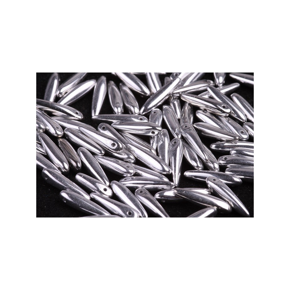 Architectural silhouettes and edgy elegance define current runway trends, making these spike-shaped glass beads a must-have for modern designers. Their elongated, conical profile adds a dramatic three-dimensional texture to fringe earrings and statement collars. These silver metallic Preciosa Thorn beads reflect light with a brilliant chrome-like finish, perfect for high-fashion accessories that require a bold, industrial aesthetic.