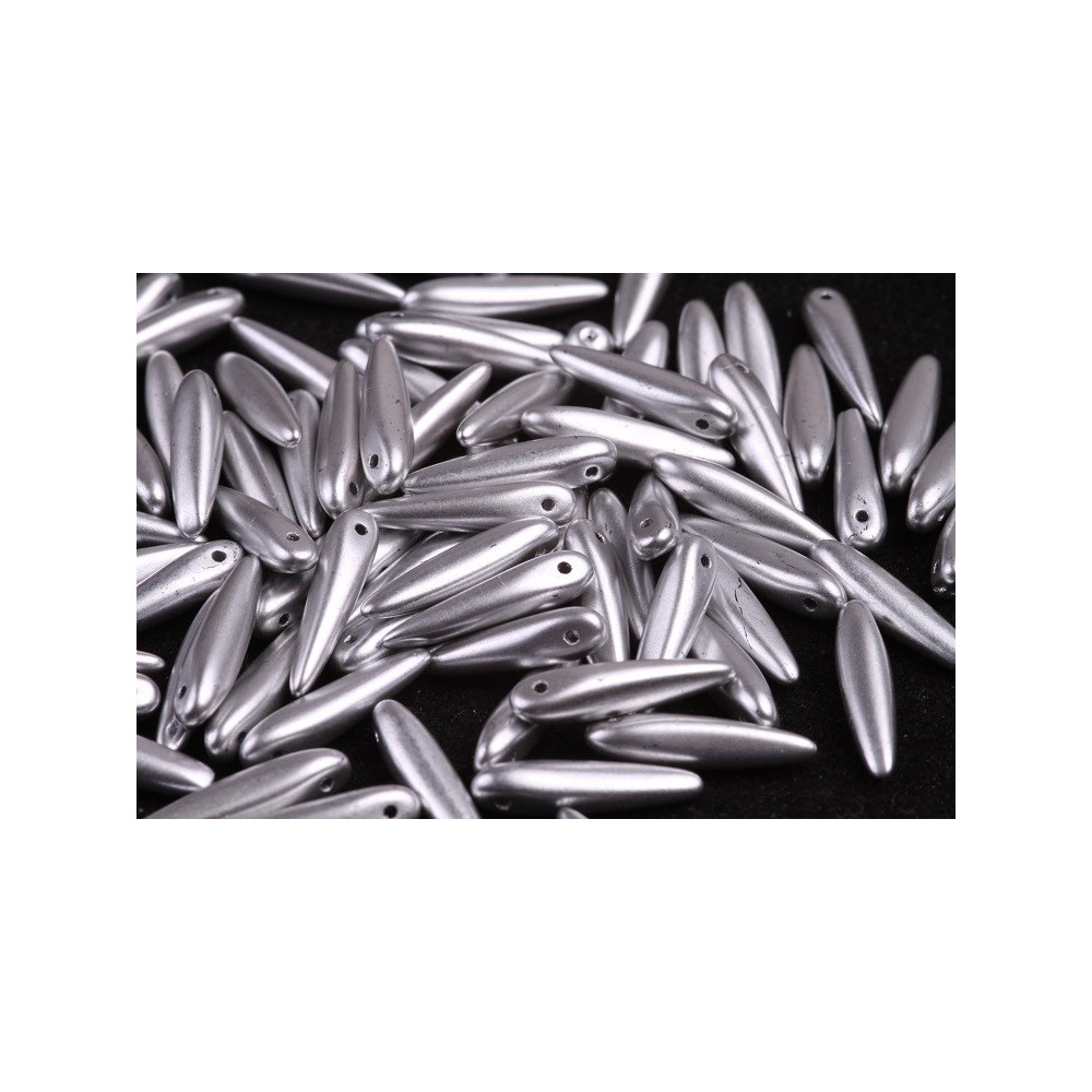 Preciosa Thorn™ pressed glass beads 5x16mm PASTEL LIGHT GREY/SILVER 02010/25028 Size: 5 x 16 mm...