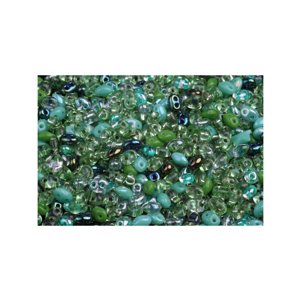 Two-hole glass PRECIOSA Twin™ 2.5x5mm green mix PRTW-10G-161