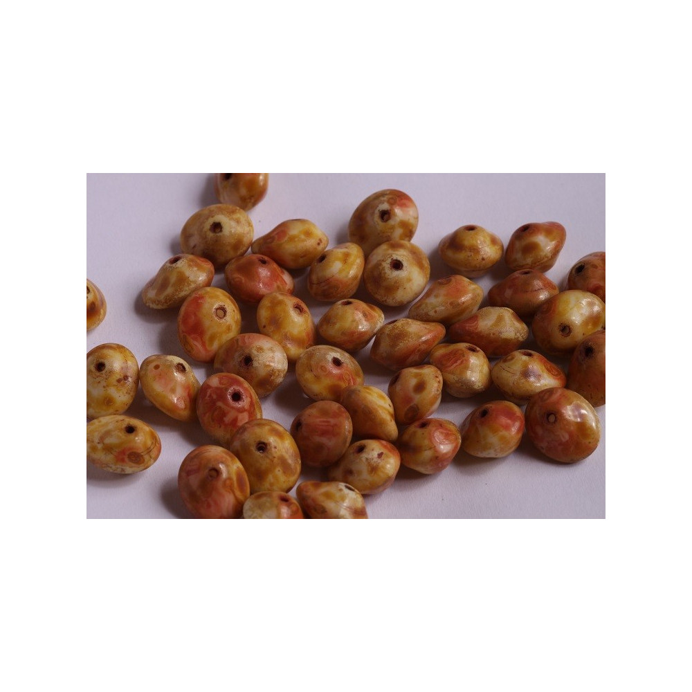 Preciosa Ufo Glass Beads 7x11mm WHITE ALABASTER RED LUSTER 02010/14495 Size: 7 x 11 mm Hole size:...