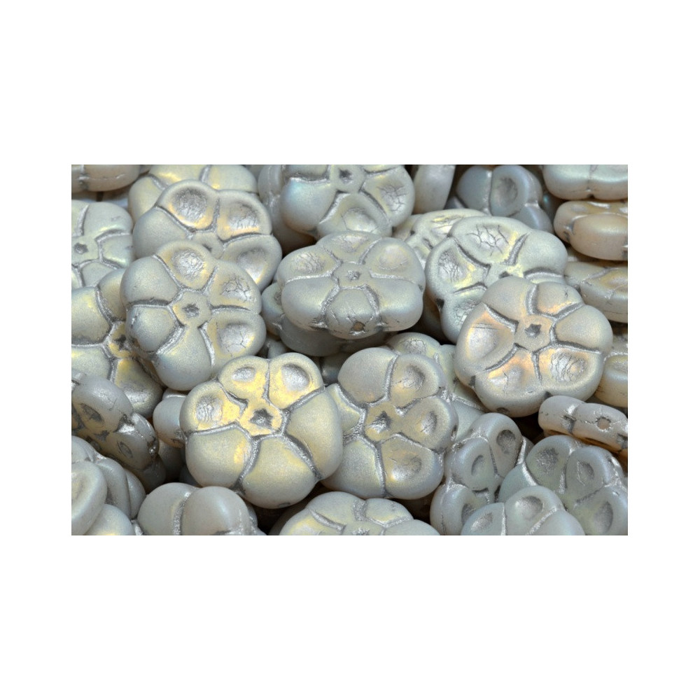 Primrose Beads 15x15mm White Alabaster MAT Opal Ab GREY DECOR 02010-84100-28703-54301
