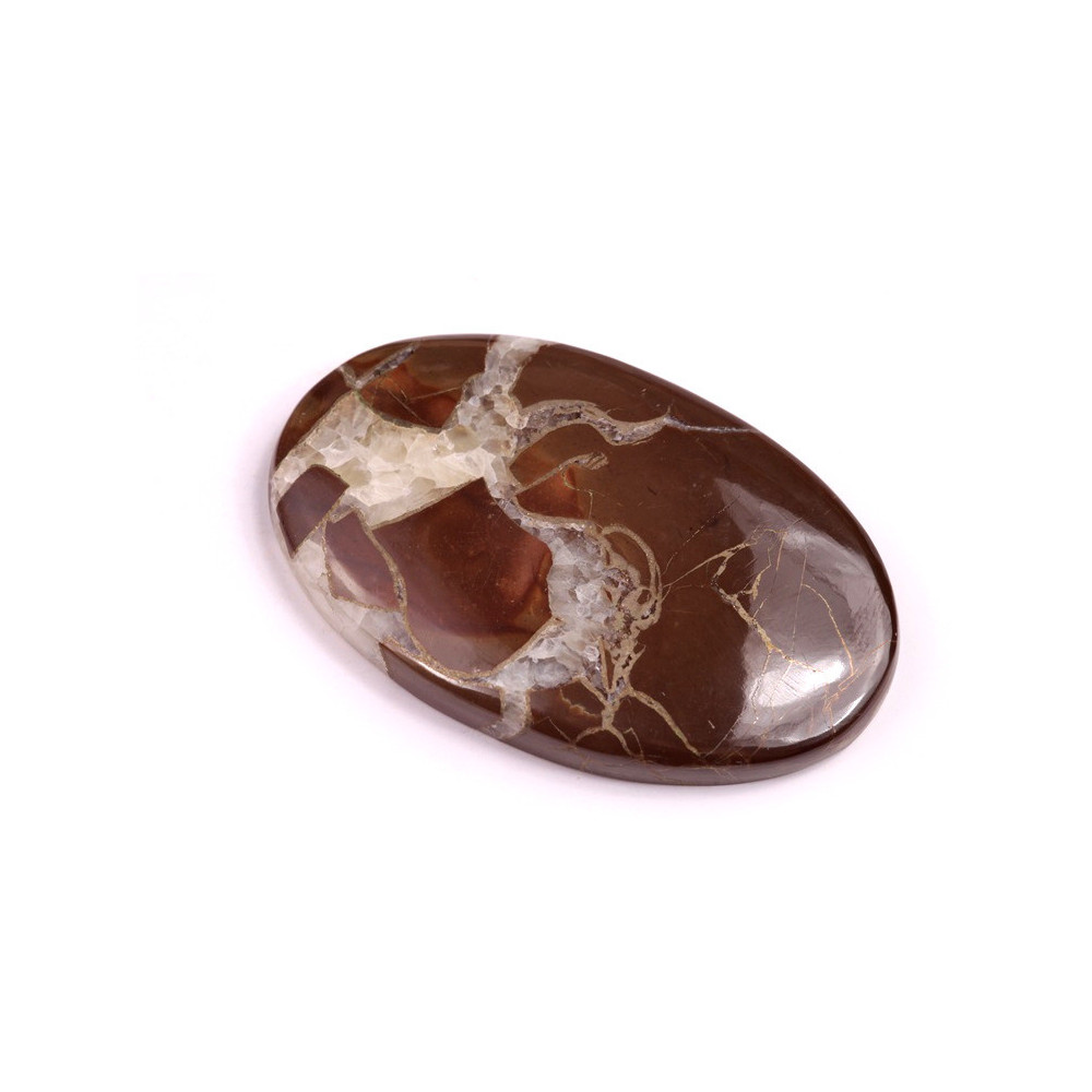 Pyrite Septarian Cabochon is a unique stone that combines the golden inclusion of pyrite with rich brown and beige tones of septarian. This stone is known for its interesting structure reminiscent of cracks or natural mosaic, giving it a fascinating and unmistakable appearance.