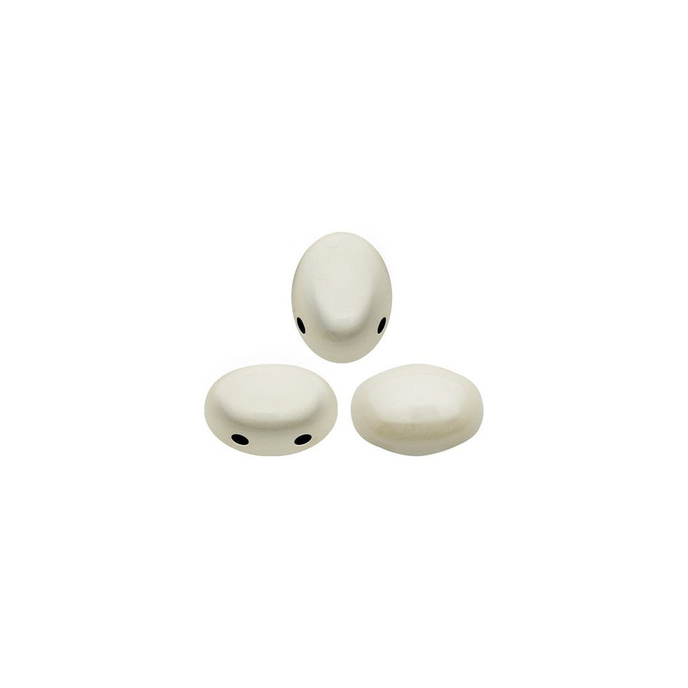 Opaque white ceramic finishes represent a timeless elegance in the centuries-old lineage of North Bohemian glassmaking. These Samos® par Puca® beads, designed by the celebrated French artist Annick Puca, embody a sophisticated fusion of Parisian style and traditional Czech craftsmanship. Their smooth, parabolic 2-hole shape provides a unique architectural element for bead weavers, allowing for the creation of fluid, organic textures in necklaces and bracelets. For a clean and classic aesthetic, this chalk white finish beautifully complements neutral accents like gold or creates a bold, modern statement when paired with jet black. These versatile components often serve as a decorative border when you integrate a Cabochon® par Puca® into your focal designs.