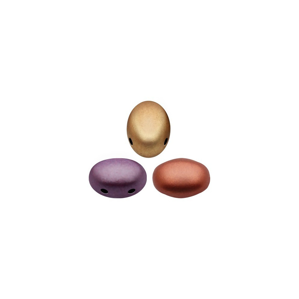 Iridescent yellow gold tones and a luxurious metallic sheen solve the common problem of finding focal components that add depth without overwhelming a delicate design. These Samos® par Puca® beads feature a unique oval shape and two parallel holes, making them an essential choice for intricate bead weaving projects where precision is paramount. The smooth, domed surface of the 5x7mm glass beads creates a professional, high-end look in any handmade jewelry piece.