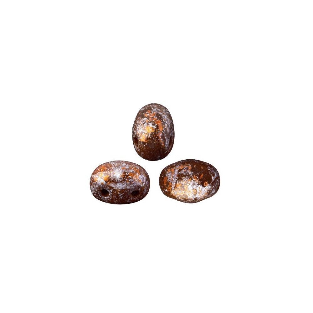 Earthy textures and rich, warm tones come together in these unique oval components, perfect for creating organic, artisan-inspired jewelry. A chocolate brown base is artfully splattered with rustic highlights, offering a sophisticated "tweedy" look that adds depth to any design where you might use a Cabochon® par Puca® as a centerpiece. These 2-hole Czech glass beads are an essential part of the collection designed by French artist Annick Puca, blending Parisian elegance with world-renowned glassmaking craftsmanship.