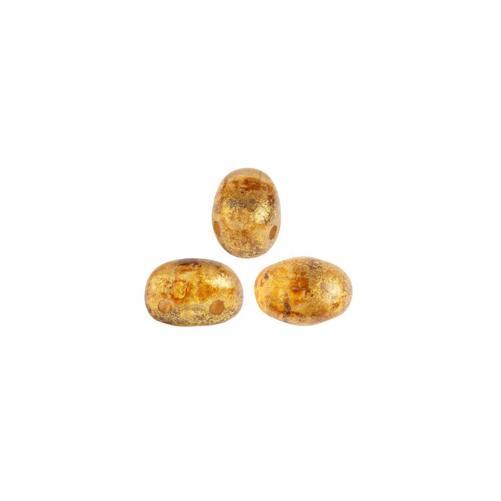Organic textures meet classic elegance in these unique Samos® par Puca® components, which combine sophisticated French design with legendary Czech glassmaking tradition. Featuring a soft, oval silhouette and two parallel holes, they provide a smooth geometric foundation for intricate bead weaving projects that require a touch of vintage luxury. The Crystal Gold Spotted finish adds a warm, mottled radiance to your jewelry, reminiscent of ancient leaf-gold work found in artisan glass.