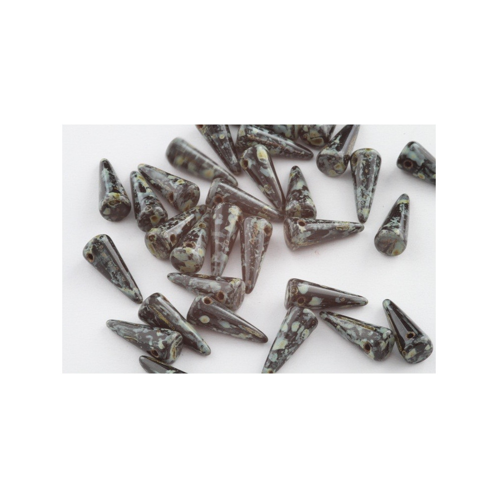 Introducing the stunning Spike Beads from the renowned Czech manufacturer Rutkovsky, designed to elevate your jewelry creations with their sleek and elongated conical shape. These exquisite black glass pressed beads measure 13x5 mm and are perfect for those who dare to express themselves through bold and edgy designs. Whether you're crafting gothic-inspired jewelry, contemporary fashion accessories, or simply looking to make a striking statement, these beads are the ideal choice.