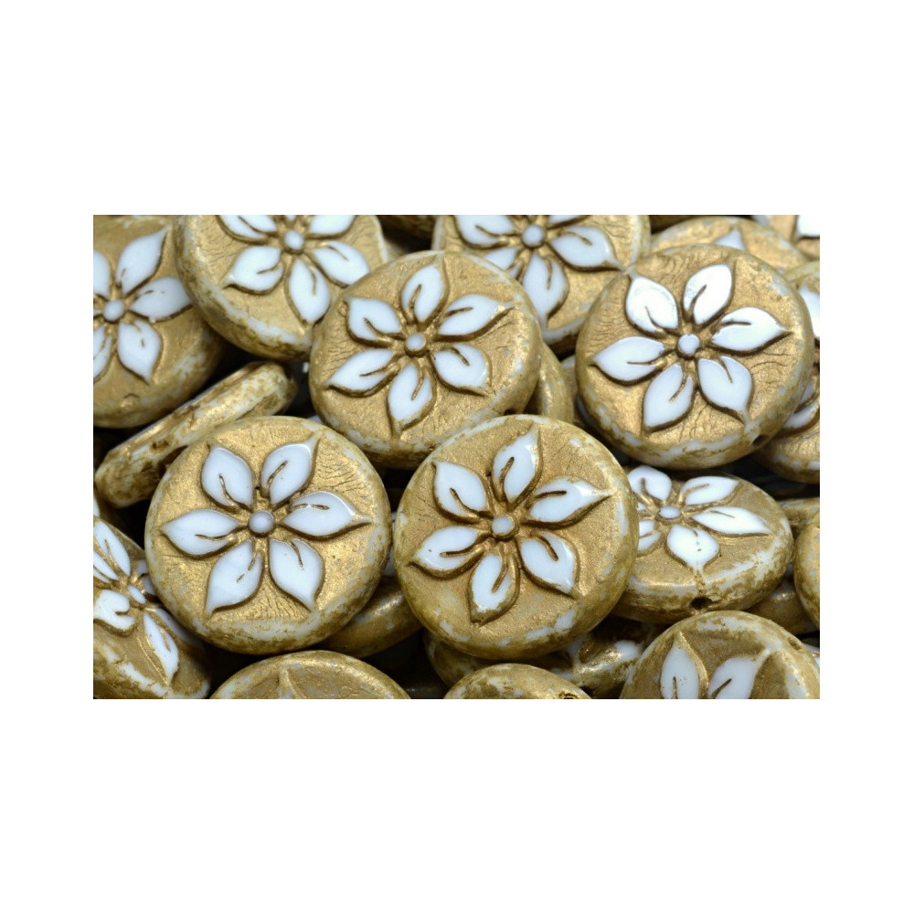 Embrace the rich heritage of Czech glass pressed beads and let the Rutkovský TCB Flower Coin Beads in Beige bring your artistic visions to life. With their timeless artistry and enduring quality, these beads are sure to inspire and elevate your creations for years to come.