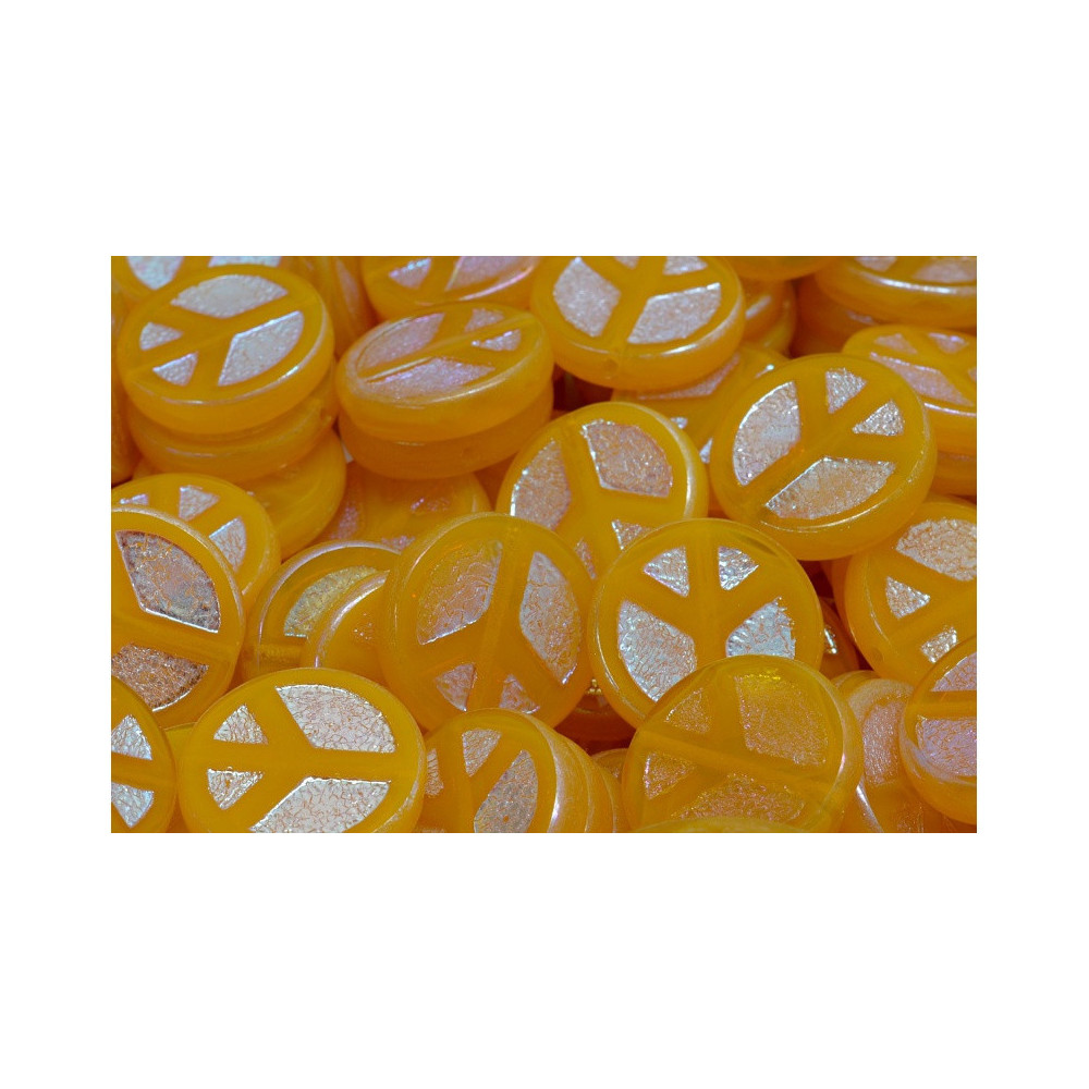 Immerse yourself in the uplifting spirit of creativity with the Rutkovský TCB Peace Beads 16x16mm in a stunning yellow hue. Expertly crafted by the renowned Czech manufacturer Rutkovský, these glass pressed beads embody a timeless peace motif that not only enhances your designs but also symbolizes harmony and tranquility. As part of the distinguished Coin Beads family, each bead features a meticulously smooth, table-cut surface that accentuates the iconic design with refined precision.