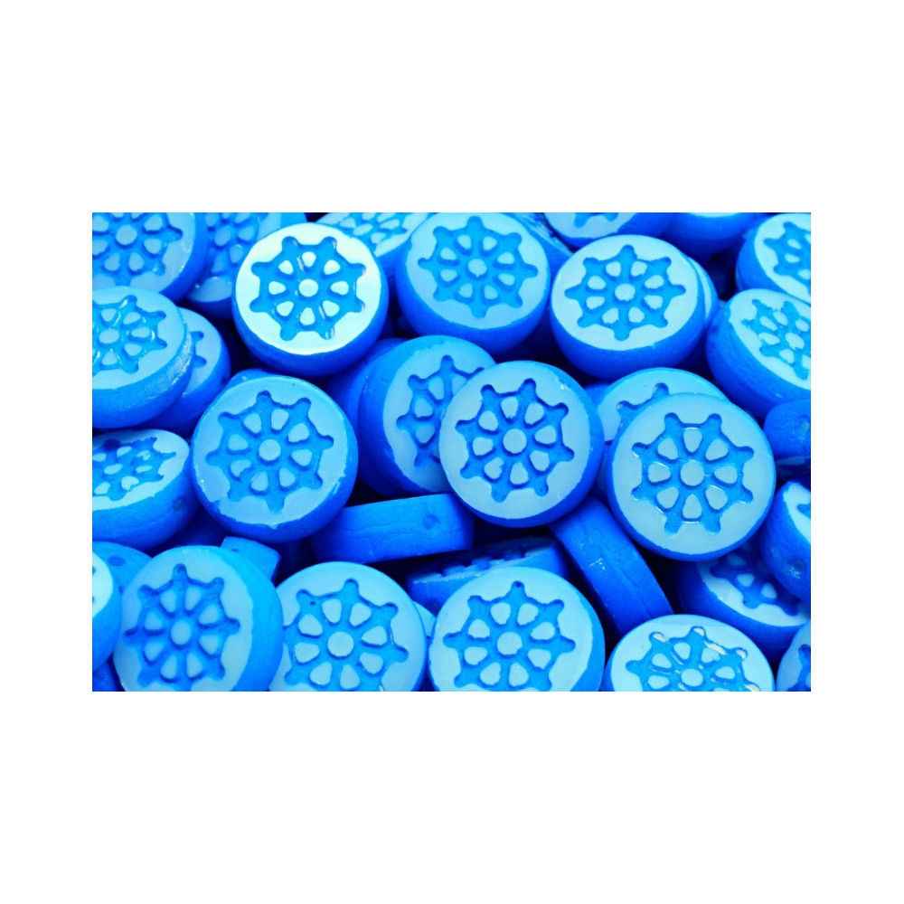 Embrace the nautical charm and timeless aesthetic of the Rutkovský TCB Wheel Coin Beads in Light Blue. Let your imagination set sail and explore innovative designs that reflect your personal style while celebrating the exquisite craftsmanship of Czech glass beads. Elevate your creations today and make a statement with your artistry!