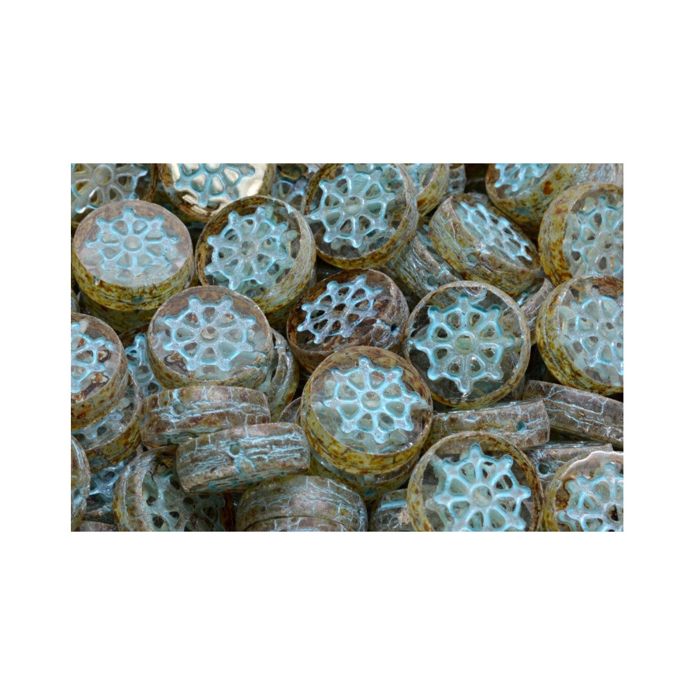 Elevate your jewelry and crafting projects with the exquisite Rutkovský TCB Wheel Coin Beads in a stunning beige hue. These 12x12mm beads, part of the exclusive Nautical Collection 2021, are crafted by the renowned Czech manufacturer Rutkovský, known for their commitment to quality and craftsmanship. Designed with meticulous attention to detail, each bead features a striking wheel-like motif that embodies the spirit of the sea, making them a perfect addition to any collection.