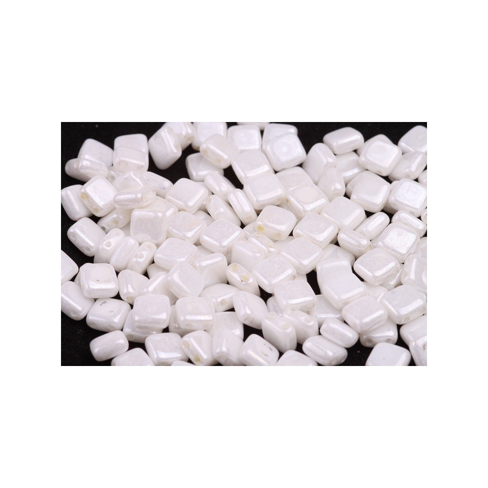 White Alabaster Luster Czech Glass Tile Beads 6 x 6 mm 02010/14400