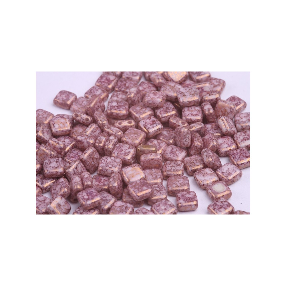Czech Glass Tile Beads 6 x 6 mm White Alabaster Violet Terracotta 02010/15496