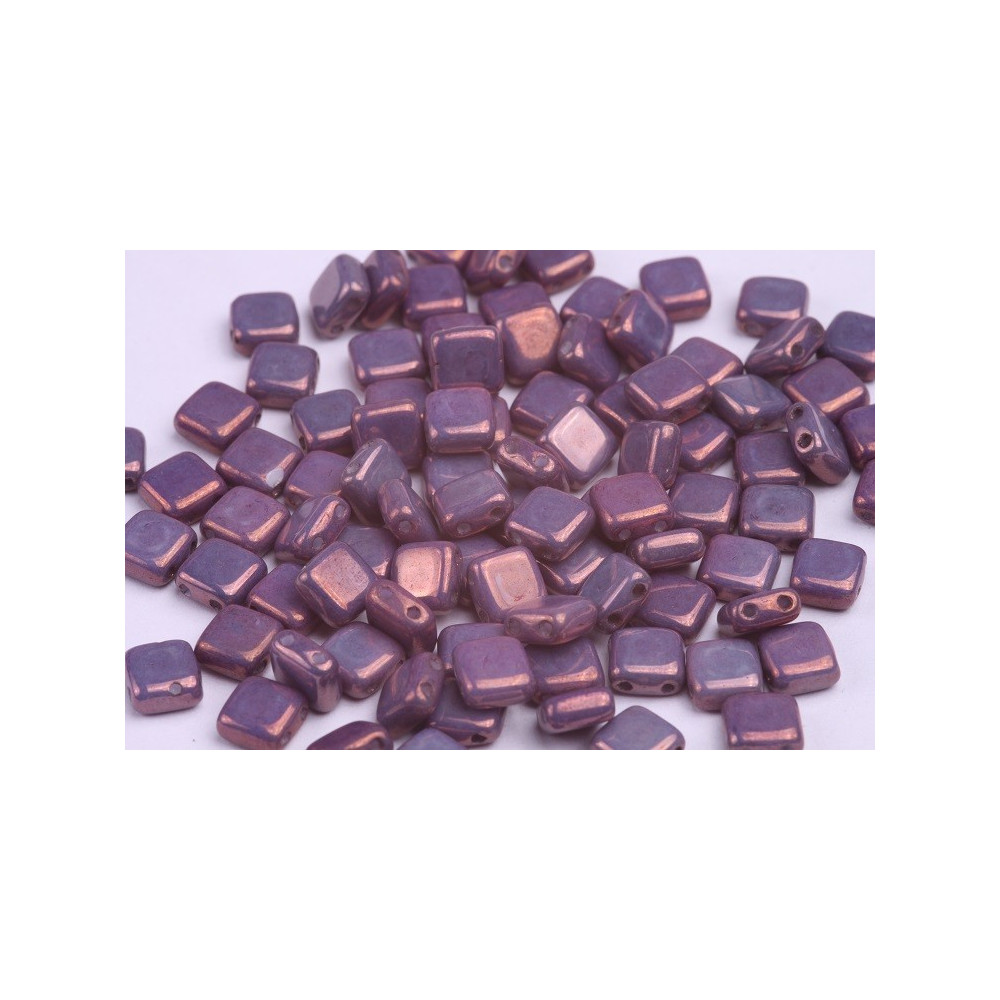 Violet hues shimmer with a metallic luster across the flat surfaces of these exquisite Tile Beads, bringing a sophisticated depth to your geometric beadwork. These 6 x 6 mm square beads are meticulously crafted by the Rutkovsky family, continuing a centuries-old tradition of handmade Czech glass artistry in the heart of the Crystal Valley. By integrating Preciosa seed beads in sizes 8/0 or 11/0 between the double holes, you can create seamless, fabric-like textures that are perfect for modern cuffs or intricate mosaic necklaces. For a striking contrast, pair these metallic violet squares with dark sapphire or maintain a harmonious palette by using white opal accents to enhance the iridescent Vega finish.