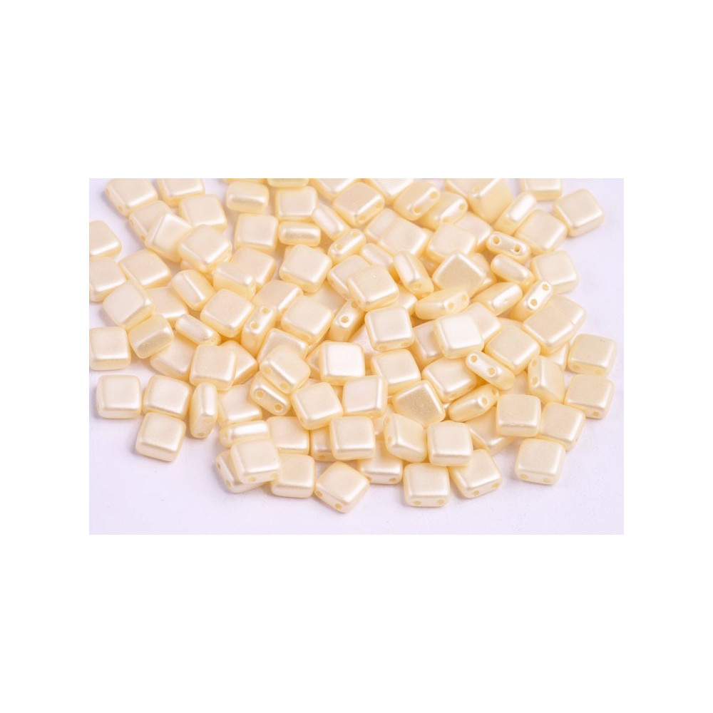 Pastel Cream Czech Glass Tile Beads 6 x 6 mm 02010/25039