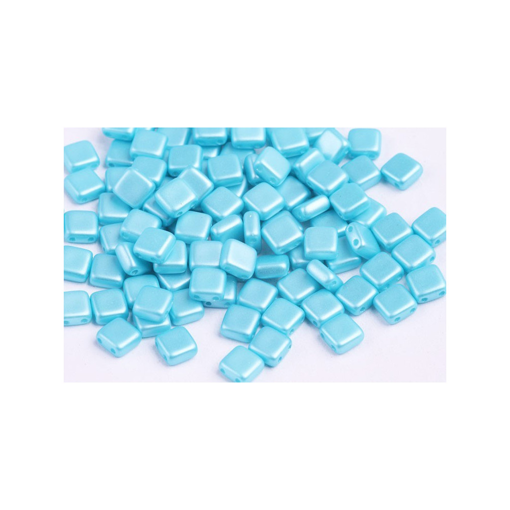 Aqua hues and a delicate pearlescent sheen define these premium 2 - hole glass components, which are essential for creating structured geometric jewelry. These Tile Beads are produced by the Rutkovsky family, whose traditional Czech glassmaking heritage ensures each piece is hand-pressed with meticulous care. Unlike mass-produced alternatives, these beads offer a slightly softened edge that feels comfortable against the skin while maintaining the precise alignment required for complex mosaic patterns. Many designers find that these squares are perfectly balanced when combined with Matubo™ SuperDuo beads to create multi-dimensional woven bracelets and necklaces.