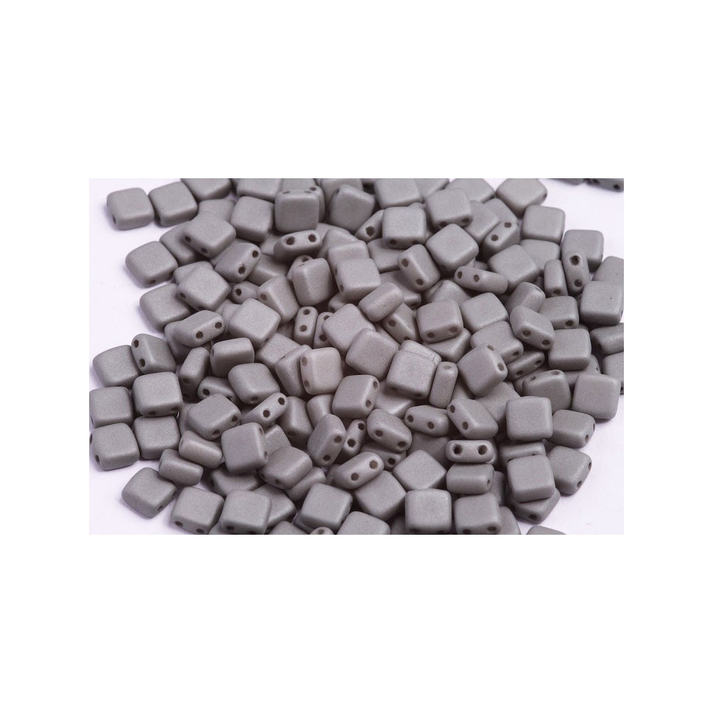 Grey Silk Matt Czech Glass Tile Beads 6 x 6 mm 02010/29566