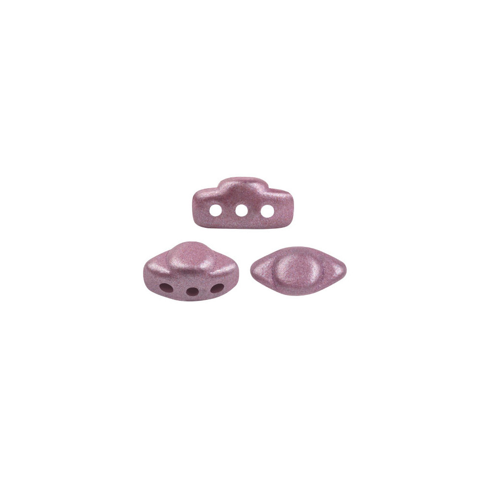 Metallic mat dark plum glass is meticulously pressed into the unique saucer shape of Volos® par Puca®, featuring three parallel holes that offer unparalleled stability for complex bead weaving. These 4 x 8 mm components are manufactured with the high-precision standards of the Czech glassmaking tradition, ensuring consistent hole diameters and smooth internal channels. This technical accuracy allows for multiple thread passes through the bead, a critical requirement for designers working on structural jewelry projects.