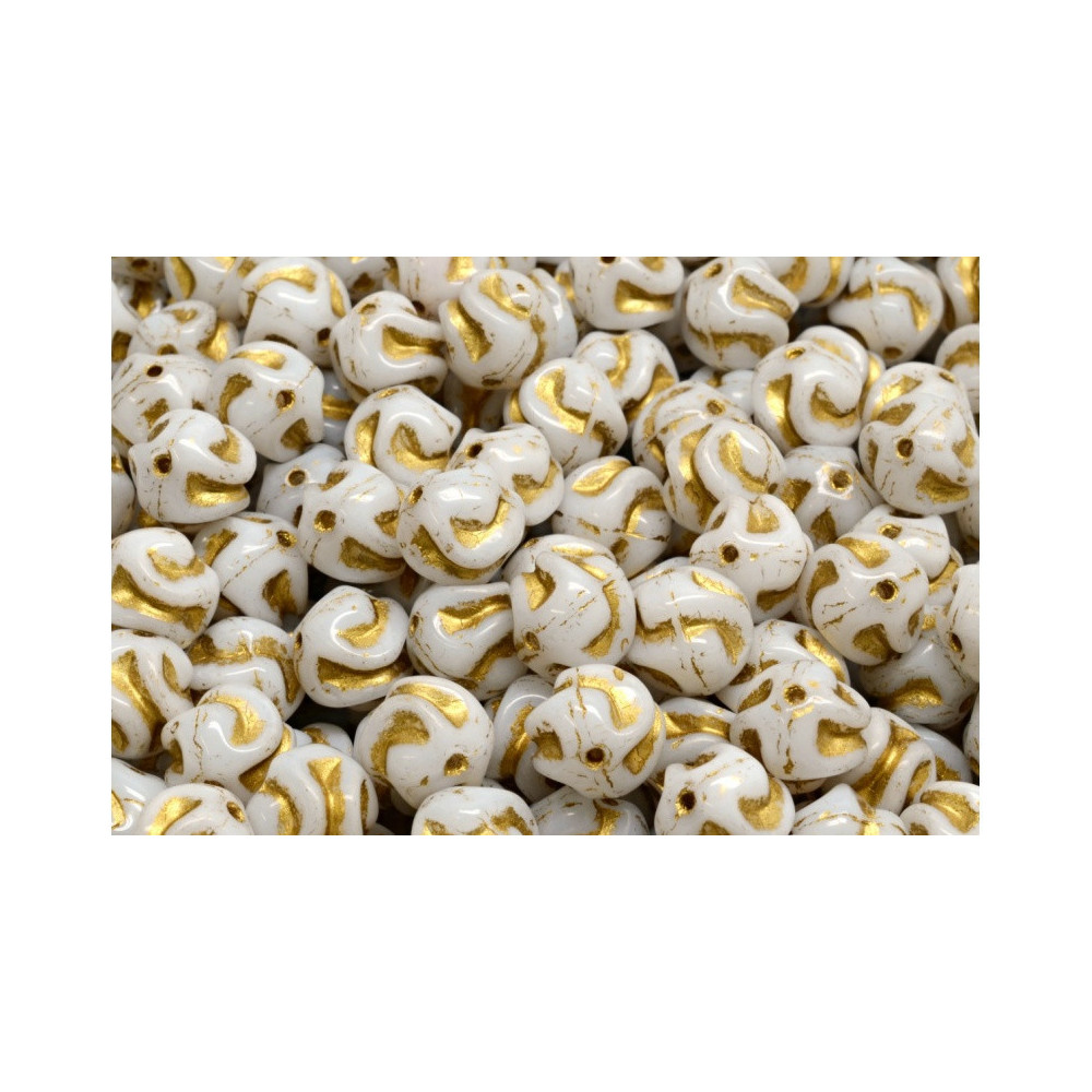 The White Alabaster/Gold color of these beads is a striking combination that exudes elegance and luxury. The soft, creamy white base is delicately accented with shimmering gold highlights, creating a luminous effect that catches the light beautifully. This versatile color palette pairs exceptionally well with a variety of other hues, making these beads a staple in any designer’s collection. Here are some suggestions for complementary colors: